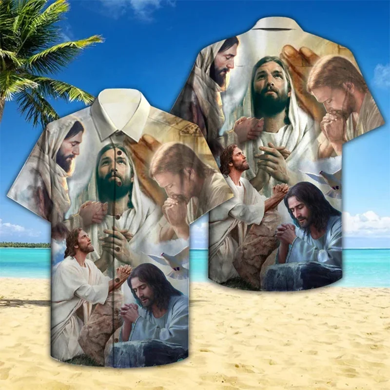 New Summer 3D Christian Jesus Printed Shirts Children Fashion Streetwear Shirts Blouses Men Cool Hawaiian Shirts Vintage Clothes